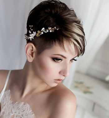 O hairstylist e colorista à frente do Oliver Salon, Bruno Oliver, defende o uso de acessórios para as mulheres com madeixas mais curtas. “O uso de véus mais compridos, tiaras ou coroa de flores favorecem o charme do cabelo mais curto e também realçam o rosto da noiva, dando maior delicadeza e elegância no look”, explica Bruno.
