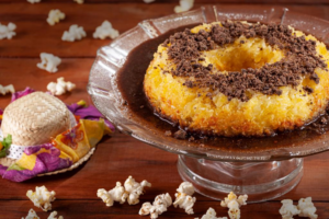 Em uma panela, misture quatro paçocas esfareladas com a água e açúcar. Aqueça por dois minutos e despeje sobre o bolo. Esfarele as outras duas paçocas e coloque por cima para decorar.