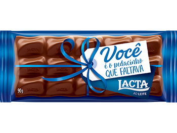 Agora, em celebração ao Dia Mundial do Chocolate comemorado no dia 7 de julho, a marca lança uma embalagem para o tablete Lacta ao leite, edição limitada, reforçando a demonstração de afeto através do chocolate. A edição especial do tablete estará disponível nos principais varejistas do Brasil a partir do dia 15 de julho até durarem os estoques, e pela primeira vez, a própria barra será o design da embalagem.