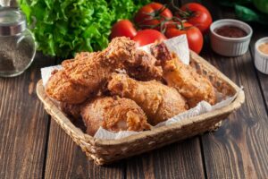 Cortes de frango: Para ter um frango frito perfeito é importante se atentar ao tipo de corte da ave. Para frituras, as partes mais indicadas são as sobrecoxas e os filés, dessa forma o cozimento será feito de maneira uniforme e sem acúmulo de óleo. Além disso, antes de colocar os pedaços para fritar, seque-os bem e tempere de acordo com sua preferência.