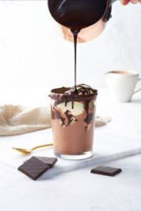 2)      Leve o chocolate quente de volta ao fogo, depois coe usando uma peneira fina e divida entre as canecas. Cubra com duas colheres de sopa de sorvete de baunilha, em seguida, despeje a ganache sobre o sorvete e sirva imediatamente.