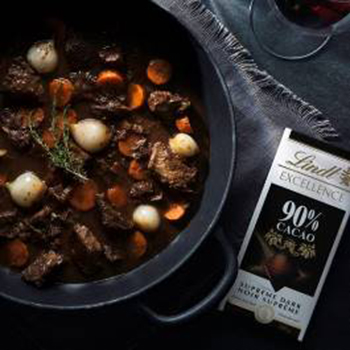 Para uma experiência única de jantar, o rico sabor do lombo, combinado com cenoura adocicada faz do Lombinho de Porco ao Curry de Chocolate uma alternativa maravilhosa às tradicionais entradas. O Guisado de Carne Bovina com Chocolate e o Filé Mignon com Molho de Chocolate Amargo e Cassis revelam que é possível combinar um prato salgado com um toque de chocolate amargo e são perfeitos para qualquer ocasião. O segredo dessas combinações são os tabletes de Lindt Excellence 70%, 85% e 90% Cacau, harmonizados com outros ingredientes marcantes que garantem um sabor único para as mais variadas refeições.