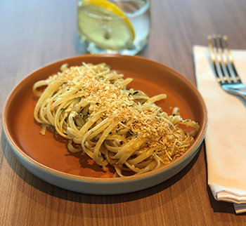 O prato, que acompanha a clássica massa Bavette Barilla, conta com ingredientes simples: salsinha, alho, óleo e farofa de pão italiano tostado. Perfeito para começar a ser um verdadeiro Master of Pasta!