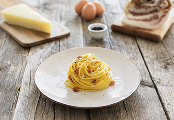 A receita, preparada com a massa Spaghetti n°5 Barilla, proporciona um prato al dente e repleto de ingredientes saborosos: guanciale ou bacon, gema de ovo, pecorino sal e pimenta! Com preparo rápido e fácil, a receita transforma qualquer cozinheiro em um Masters of Pasta.