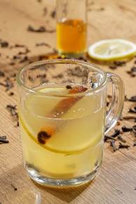 Decore com pau de canela e rodela de limão. Adicione fatias de gengibre a gosto.