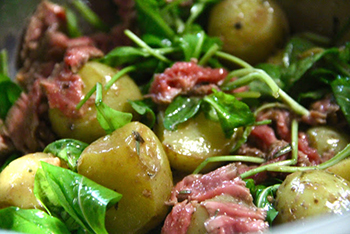 Salada de Rúcula e Batatas com Tagliata (filet selado)