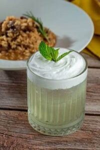 Em uma coqueteleira macere pepino, a hortelã e xarope de gengibre. Em seguida coloque os demais ingredientes com bastante gelo e bata bem, coe e sirva em um copo com gelo. Finalize com espuma de gengibre e um ramo de hortelã. Pronto!