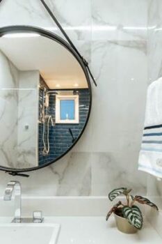 Aliados dos banheiros enxutos, Jéssica destaca que os espelhos devem assumir um papel de protagonista no projeto, isso porque são capazes de proporcionar, além de muito estilo e design moderno, sensação de amplitude e efeito de profundidade, fazendo com que o local pareça maior.