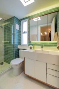Jéssica Nunes chama a atenção para esse item que é ainda mais versátil em cômodos pequenos. “Isso porque ele pode agir como um dos principais itens decorativos do banheiro além de cumprir com sua função básica, se tornando parte fundamental no projeto”, destaca.