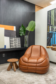 Assinada pelo Estúdio Mula Preta, a poltrona de curvas marcantes expressa a maturidade do design nacional. O volume preciso evidencia o corpo que ela recebe, funcionando tanto como peça protagonista quanto integrada a paletas neutras, sem perder expressão.