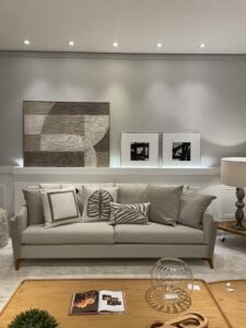 Com estrutura ampla e estofamento envolvente, o sofá Sierra mostra que conforto não precisa ser exuberante. A escolha dos tecidos e o desenho limpo das linhas compõem um mobiliário que acolhe sem esforço, adaptando-se a diferentes propostas de sala sem perder identidade.