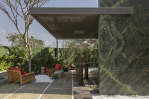 Ainda na parte externa, Andrea Esteves e Rui Salvino utilizaram pedras, água e uma vasta diversidade de plantas para dar origem a um jardim do espaço Sigramar Stone Garden. Segundo os profissionais, a proposta é conscientizar os visitantes, também, em relação à sustentabilidade.