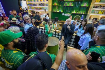 Embaixadora da Brasilux, Renata Fan liderou, ao lado de Ronaldo Giovanelli, um encontro descontraído e interativo com o público da feira, estabelecendo uma conexão direta com clientes e visitantes do estande. O bate-papo abordou temas de alta repercussão, como o crescimento do futebol feminino, a presença das mulheres em setores historicamente masculinos e projeções para competições como a Libertadores e a Copa do Mundo.
