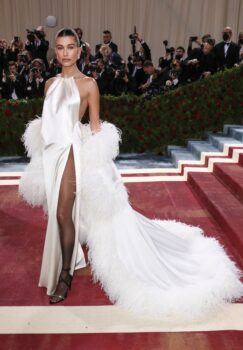 Aconteceu nesta segunda-feira, 22, o Met Gala, um evento de gala anual que angaria fundos para o Metropolitan Museum of Art em Nova Iorque. A modelo, Hailey Bieber, usou vestido da Saint Laurent por Anthony Vaccarello para prestigiar a noite.