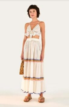 Seguindo sua marca registrada com opções de looks artesanais como crochet e laise, a Farm, localizada no Boulevard do Shopping Iguatemi Ribeirão Preto, este ano apostou em peças brancas com detalhes, bordados delicados e pontos de brilho com fios de lurex. Entre os looks mais buscados estão os vestidos longos e os conjuntos.