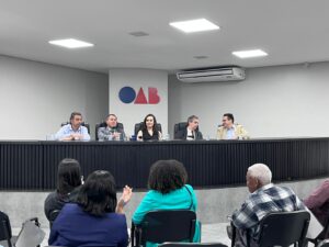 As autoridades presentes reforçaram o compromisso interinstitucional no combate à fraude. O Dr. Wanir Silveira, Delegado Seccional, destacou a importância das denúncias e da parceria com a Comissão da OAB para a rápida identificação e punição dos responsáveis. O Juiz José de Arimatéia ressaltou o empenho do Fórum em garantir a segurança do sistema judiciário e alertar sobre o uso indevido de informações processuais por criminosos.