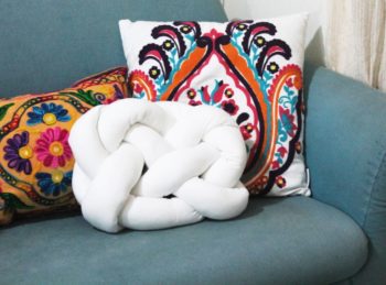 – Pronto! Sua almofada nó ou trançada está liberada para decorar sua cama ou seu sofá!